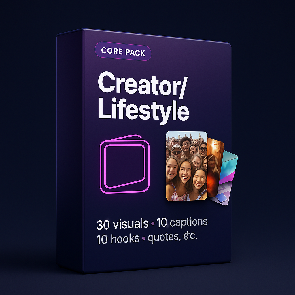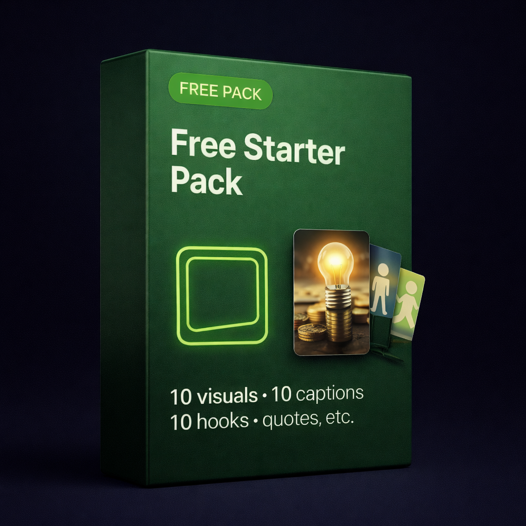 Content Packs are ready-to-use visuals and captions. You simply copy, paste and post — no design or writing skills needed. Perfect for TikTok, Instagram and other platforms.